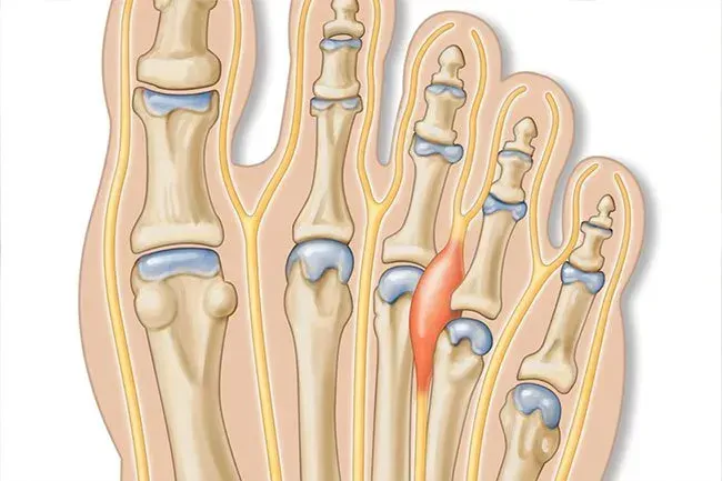 Toto je velmi běžný stav nohou. Může to mít až jeden ze tří lidí. Mezi příznaky patří bolest v přední části vaší nohy nebo pocit, jako byste chodili po skále nebo mramoru. Stává se to častěji u starších žen a u těch, kteří nosí vysoké podpatky nebo boty s těsnou krabicí na špičce. Přepínání obuvi obuvi a masáž může pomoci. Pokud se vaše bolest váží, může váš lékař navrhnout výstřely nebo chirurgický zákrok.