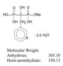 Tablety Actonel (risedronát sodík) jsou pyridinyl bisfosfonát, který inhibuje osteoklastově zprostředkovanou kostní resorpci a moduluje metabolismus kostí. Každá tableta Actonelu pro perorální podání obsahuje ekvivalent 5 30 35 75 nebo 150 mg bezvodého risedonátu sodíku ve formě hemipentahydrátu s malým množstvím monohydrátů. Empirický vzorec pro hemipentahydrát sodíku sodíku je C 7 H 10 ŽÁDNÝ 7 P 2 Do • 2,5 h 2 O. Chemický název risedronátové sodíku je [1-hydroxy-2- (3-pyridinyl) ethyliden] bis [fosfonová kyselina] monosodická sůl. Chemická struktura hemi-pentahydrátu sodíku sodného sodného je následující: