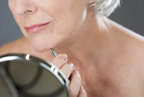 Hormonální změny u žen mohou někdy vést k růstu vlasů obličeje. Jako ženy v blízkosti menopauzy jejich těla produkují méně estrogenu. To znamená, že testosteron drží větší houpání. A právě tato nová rovnováha hormonů může způsobit, že se vlasy na tváři zvyšují a tmavší.