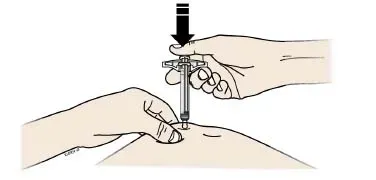 - Udržujte pokožku natažené nebo sevřené dokud není injekce dokončena.