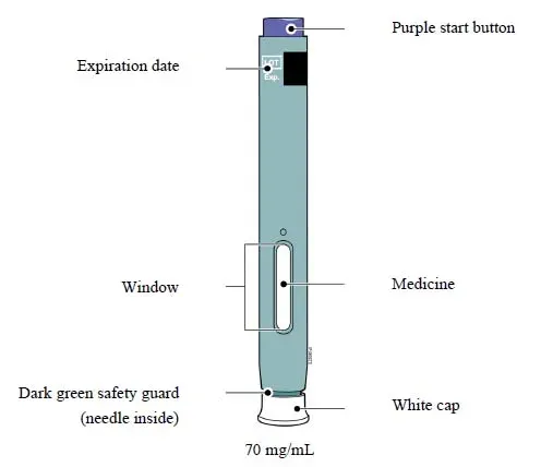 - Balení 1 autoinjektoru: 70 mg/ml předběžného autoinjektoru s jednou dávkou NDC 55513-841-01