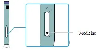 Důležité : Pokud se okno nezbavilo nebo vypadá, že lék stále vychází, nedostali jste plnou dávku. Okamžitě zavolejte svému poskytovateli zdravotní péče.