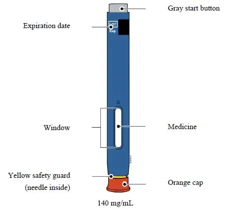 - Injekce : 140 mg/ml v předběžném surereclicku s jednou dávkou ® Autoinjektor