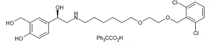 Druhou aktivní součástí Breo Ellipta je vilanterol trifenatát a laba s chemickým názvem Triphenylacetová kyselina-4-{(1 R ) -2-[(6- {2- [26-dicholorobenzyl) oxy] ethoxy} hexyl) amino] -1-hydroxyethyl} -2- (hydroxymethyl) fenol (1: 1) a následující chemická struktura:
