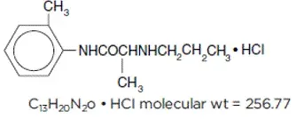 Informace získané z různých koncentrací a využití formulací ukazují, že prilokain je po parenterální podávání zcela absorbován po jeho míře absorpce v závislosti na takových faktorech, jako je místo podávání a přítomnost nebo nepřítomnost vazokonstrikčního činidla. Prilokain je metabolizován v játrech i ledvinách a vylučuje se ledvinou. Není metabolizován plazmatickými esterázami. Hydrolýza prilokainu amidáty poskytuje orto-toluidin a npropylalanin. Obě tyto sloučeniny mohou podléhat hydroxylaci kruhu.