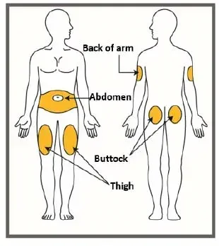 - Ne Injekci na stejném místě. Například pokud vaše první injekce byla ve vašem břiše, vaše další injekce by mohla být v jiné oblasti vašeho břicha.