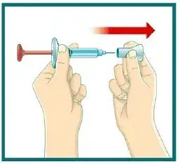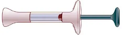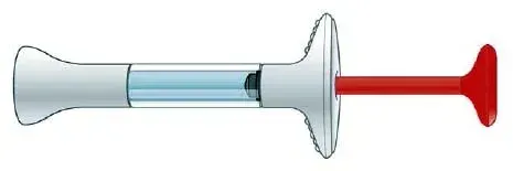 - Vy should see the coral plunger rod show through the syringe body when the injection is complete as shown.