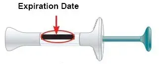 - Vy should see the teal plunger rod show through the syringe body when the injection is complete as shown.