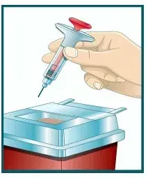 - Ne Vložte čepici jehly zpět na předplněnou stříkačku.