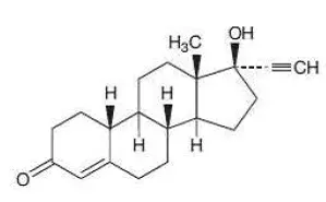 Norethindrone USP je bílý až krémový bílý krystalický prášek bez zápachu. Je stabilní ve vzduchu. Prakticky nerozpustné ve vodě; rozpustný v chloroformu a v dioxanu; střídmě rozpustný v alkoholu; Mírně rozpustné v etheru. Chemický název pro norethindrone je 17-Hydroxy-19-NOR-17a-Pregn-4-EN-20-En-3-One. Strukturální vzorec je následující: