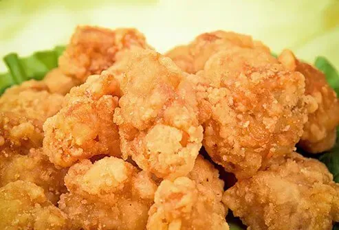 Zkontrolujte ingredience, ale křupavý povlak na většině kuřecích nuggetů a rybích tyčinek je obvykle vyroben z pšeničné mouky.