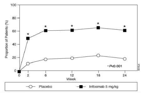Doporučená dávka infliktry pro pediatrické pacienty 6 let a starší s mírně až těžce aktivním CD je 5 mg/kg, který je dán jako intravenózní indukční režim po 0 2 a 6 týdnech, po kterém následuje režim údržby 5 mg/kg každých 8 týdnů.
