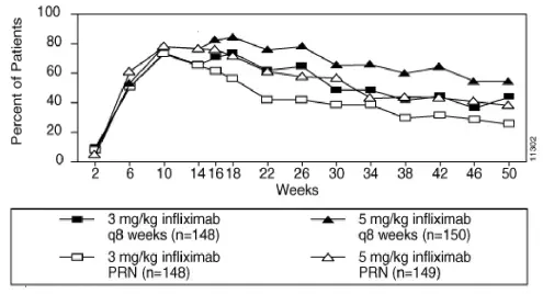 Doporučené dávkování inflektry je 5 mg/kg dáno jako intravenózní indukční režim při 0 2 a 6 týdnech, po kterém následuje režim údržby 5 mg/kg každých 8 týdnů poté pro léčbu dospělých s mírně až těžce aktivním CD nebo fistulizací CD. U dospělých pacientů, kteří reagují a poté ztratí odpověď na odpověď, může být při léčbě 10 mg/kg každých 8 týdnů věnována léčbě 10 mg/kg. Pacienti, kteří nereagují do 14. týdne, je nepravděpodobné, že by reagovali s pokračujícím dávkováním a zvážením by měli být u těchto pacientů ukončeni infliktrou.