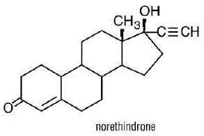 Chemický název Norethindrone je 17-Hydroxy-19-NOR-17a-Pregn-4-EN-20-En-3-One. Má molekulární vzorec C 20 H 26 O 2 a molekulová hmotnost 298,4. Má následující strukturální vzorec: