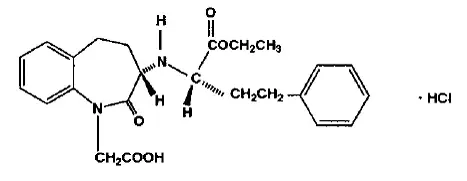 Hydrochlorid benazepril je bílý až bělavý krystalický prášek rozpustný (> 100 mg/ml) ve vodě ve ethanolu a methanolu. Chemické název hydrochloridu benazepril je 3-[[1- (ethoxycarbonyl) -3-fenyl- (1S) -propyl] amino] -2345-tetrahydro-2-oxo-1H-1- (3S) -Benzaz epine-1-octor monohydrochlorid; jeho strukturální vzorec je