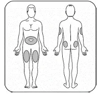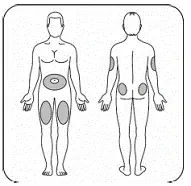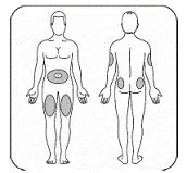 - Vyberte svůj injekční web. Lyumjev je injikován pod kůži (subkutánně) vašeho žaludku hýždí horní nohy nebo horní paže.