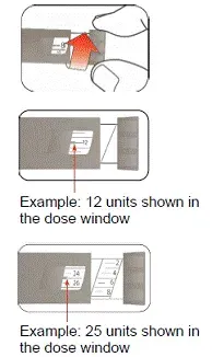 Toto pero bylo navrženo tak, aby dodávalo dávku, která je zobrazena v okně dávky. Vytočte svou obvyklou dávku podle pokynů vašeho poskytovatele zdravotní péče.