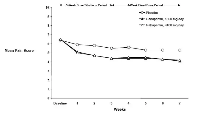 U dospělých s Postherpetická neuralgie Neurontin may be initiated on Day 1 as a single 300 mg dose on Day 2 as 600 mg/day (300 mg two times a day) a on Day 3 as 900 mg/day (300 mg three times a day). The dose can subsequently be titrated up as needed for pain relief to a dose of 1800 mg/day (600 mg three times a day). In clinical studies efficacy was demonstrated over a range of doses from 1800 mg/day to 3600 mg/day with comparable effects across the dose range; however in these clinical studies the additional benefit of using doses greater than 1800 mg/day was not demonstrated.