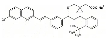 Montelukast sodium is described chemically as [R-(E)]-1-[[[1-[3-[2-(7-chloro-2-quinolinyl)ethenyl]phenyl]-3-[2-(1-hydroxy-1-methylethyl)phenyl]propyl]thio]methyl]cyclopropaneacetic acid monosodium salt.