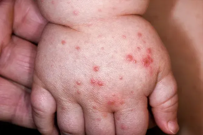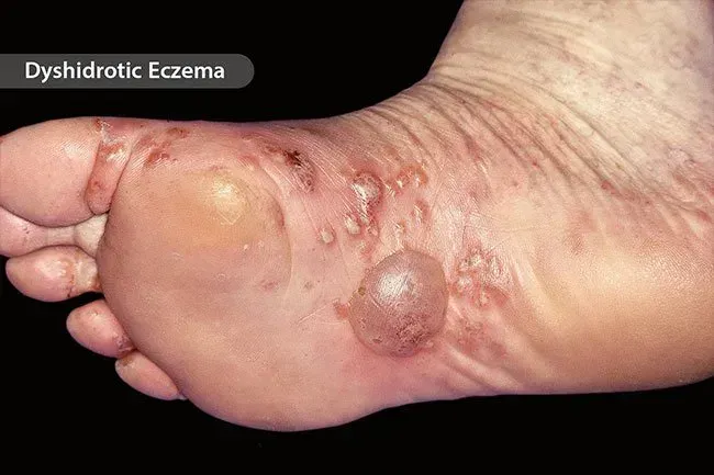 Také známý jako ekzém Tento stav se obvykle zobrazuje jako vyrážka. Ale s některými typy můžete také získat puchýře naplněné čistou tekutinou. Dyshidrotický ekzém způsobuje tyto super-utilé puchýře na dlaních a chodidlech vašich nohou. Puchýře naplněné hnisem jsou znamením, že se váš ekzém nakazil. Pokud si myslíte, že můžete mít kožní infekci, navštivte svého lékaře.
