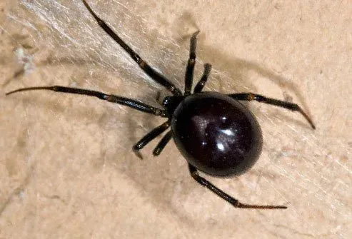 Pokud žijete podél pobřeží, můžete si všimnout pavouka, který vypadá nápadně podobně jako černá vdova. Falešná černá vdova je přibližně stejná jako skutečná černá vdova, ale na břiše nemá vzorec červených hodin. Je také více oválný než skutečný obchod a mnoho z nich má na jejich černých tělech slabé světlé zbarvení, které může být obtížné vidět.