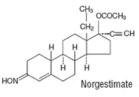 Každá modrá tableta obsahuje 0,250 mg progestační sloučeniny Norgestimate (18 19-dinor-17-těhotenství-4-en-12-3-one17- (acetyloxy) -13-ethyl-oxim (17a)-()-()-) a 0,035 mg estrogenního etinylového estradiolu (19-ur-17a-pregna 135 (10) -Trien-20-yene-3 17-diol) a neaktivní ingredience zahrnují bezvodé laktózy FD