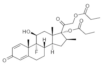 Betamethason dipropionát má chemický název 9-fluoro-11 (beta) 1721-trihydroxy-16 (beta)-methylpregna-14-diene-320-dione1721-dipropionát s empirickým vzorcem C C 28 H 37 Fo 7 molekulová hmotnost 504,6 a následující strukturální vzorec: