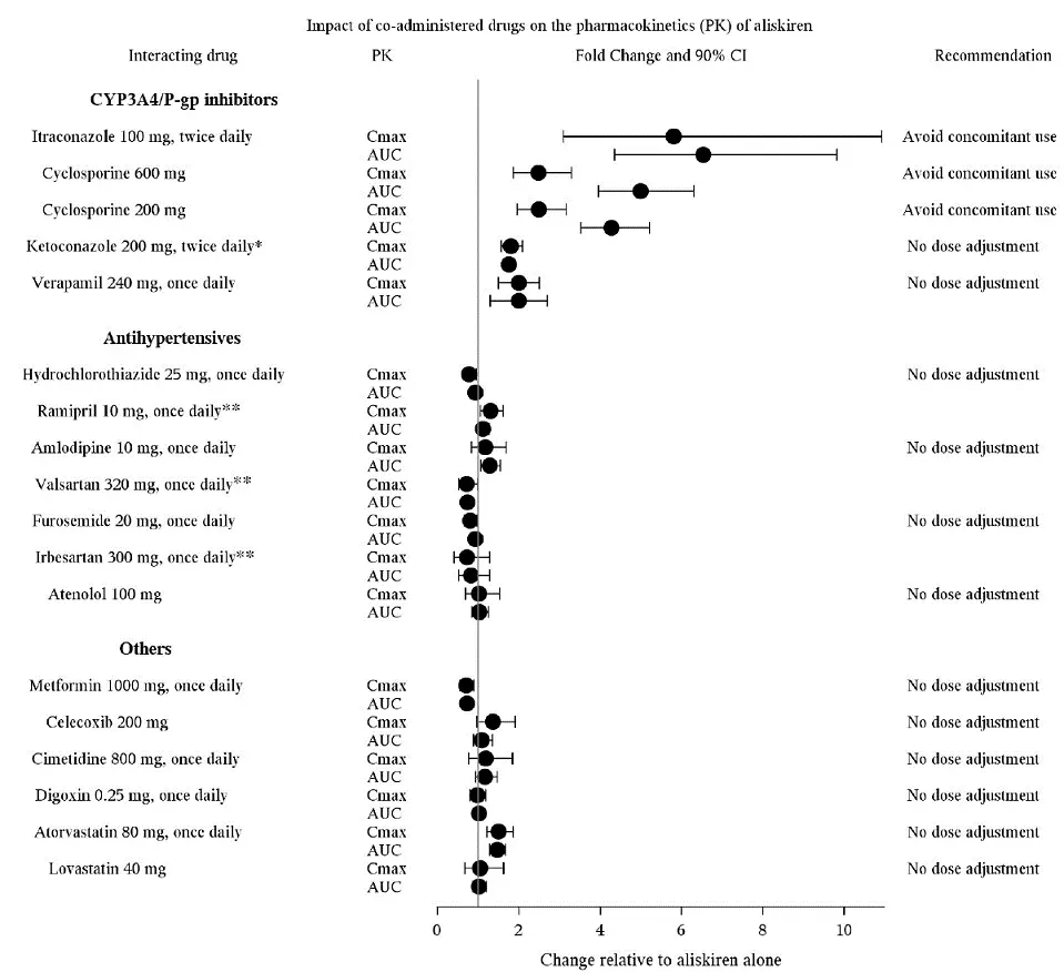 Pacienti s diabetem s onemocněním ledvin (definovaní buď přítomností albuminurie nebo redukované GFR) byli randomizováni na aliskiren 300 mg denně (n = 4296) nebo placebo (n = 4310). Všichni pacienti dostávali na pozadí terapii pomocí ARB nebo ACEI. Primárním výsledkem účinnosti byl čas na první událost primárního koncového koncového bodu sestávajícího z kardiovaskulární úmrtí resuscitované náhlé úmrtí nefatální infarkt myokardu Neplánovaná hospitalizace pro srdeční selhání nástupu onemocnění ledvin v konečném stádiu renálového onemocnění renálu a koncentraci sérového kreatininu uloženého po dobu nejméně 1 měsíce. Po průměrném sledování asi 32 měsíců byla studie ukončena brzy kvůli nedostatečné účinnosti. Vyšší riziko hypotenze renálního poškození a hyperkalémie bylo pozorováno u aliskiren ve srovnání s pacienty ošetřenými placebem, jak je uvedeno v tabulce 6.