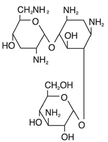 Chemický název : O-3-Amino-3-deoxy-a-D-glukopyranosyl- (1 → 4)-[26-diamino-236-trideoxy-a-d- ryba -Hexopyranosyl- (1 → 6)]-2-deoxy-l-streptamin