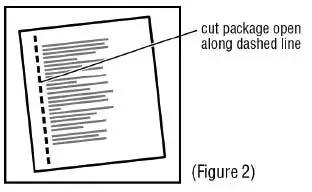 2. Řezejte podél přerušované čáry na balíčku transdermu SCöP (viz viz Obrázek 2 ).