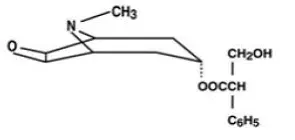 Transdermální systém Transderm SCOP® (scopolamin) je kruhová plochá náplast navržená pro nepřetržité uvolňování scopolaminu po aplikaci do oblasti neporušené kůže na hlavě za uchem. Každý systém obsahuje 1,5 mg scopolaminové báze. Scopolamin je α-(hydroxymethyl) kyselina benzeneacetová 9-methyl-3-oxa-9-aZatricyclo [3.3.1.0 24 ] ne 7-ester. Empirický vzorec je C 17 H 21 ŽÁDNÝ 4 a jeho strukturální vzorec je: