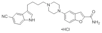 Vilazodon HC1 je 2-benzofurancarboxamid 5- [4- [4- (5-Cyano-1H-3-3-yl) butyl] -1-piperazinyl]-hydrochlorid (1: 1). Jeho molekulová hmotnost je 477,99. Strukturální vzorec je: